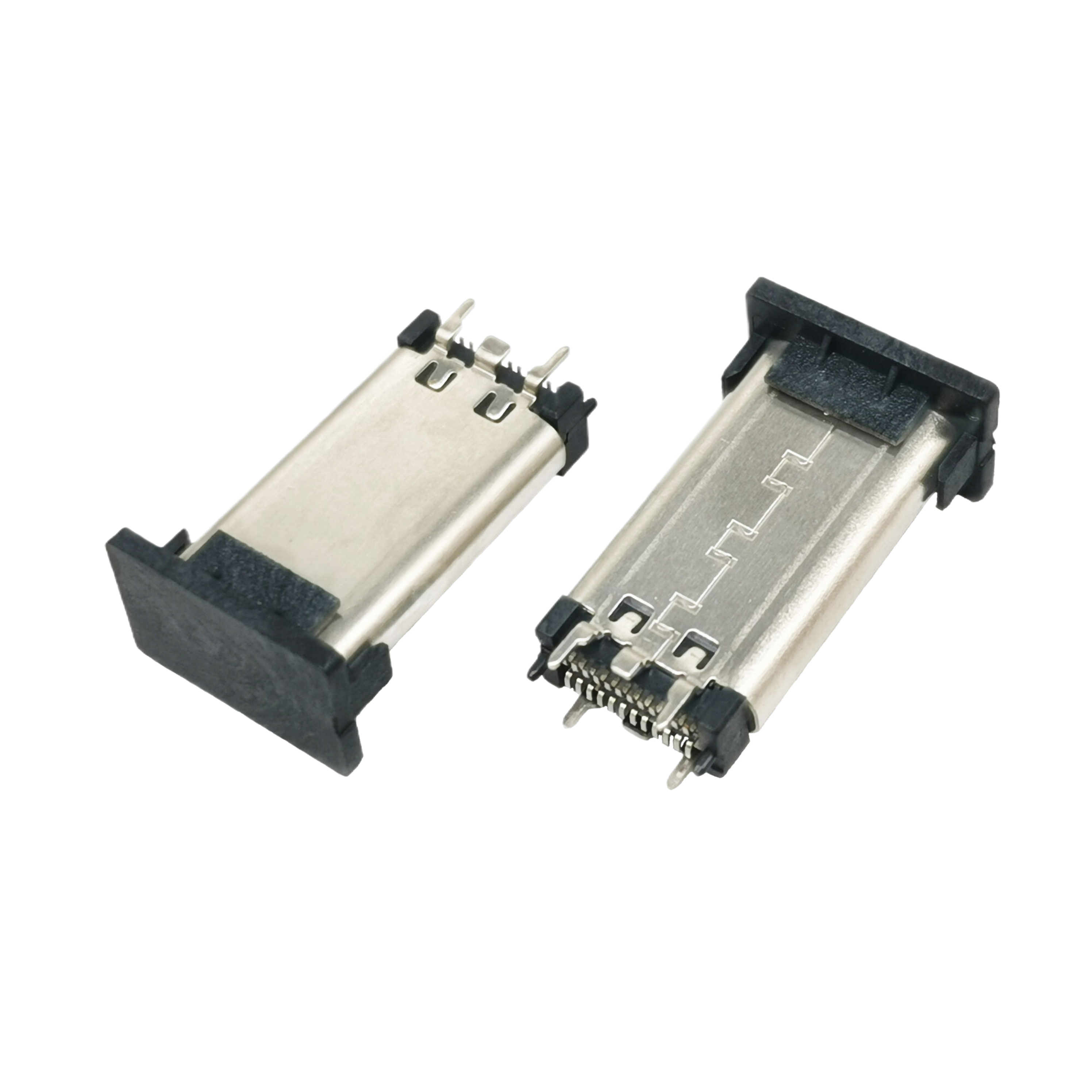 加長(zhǎng)TYPE C 24P母座 板上雙貼SMT 帶定位柱 長(zhǎng)度L=13.18MM 雙殼